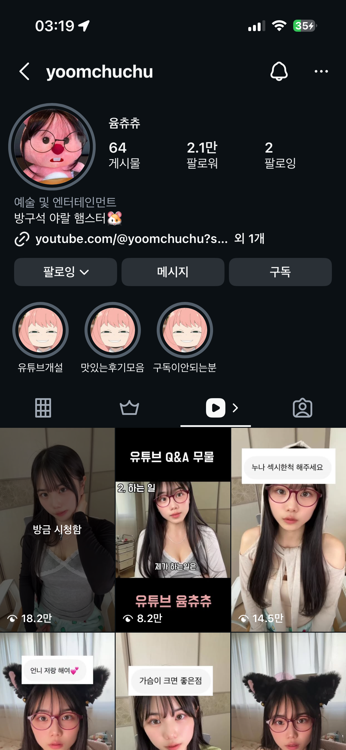 윰츄츄 구독영상 있으신분