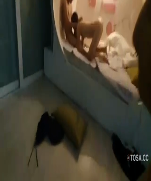 특이한 침대에서 즐기는 3명